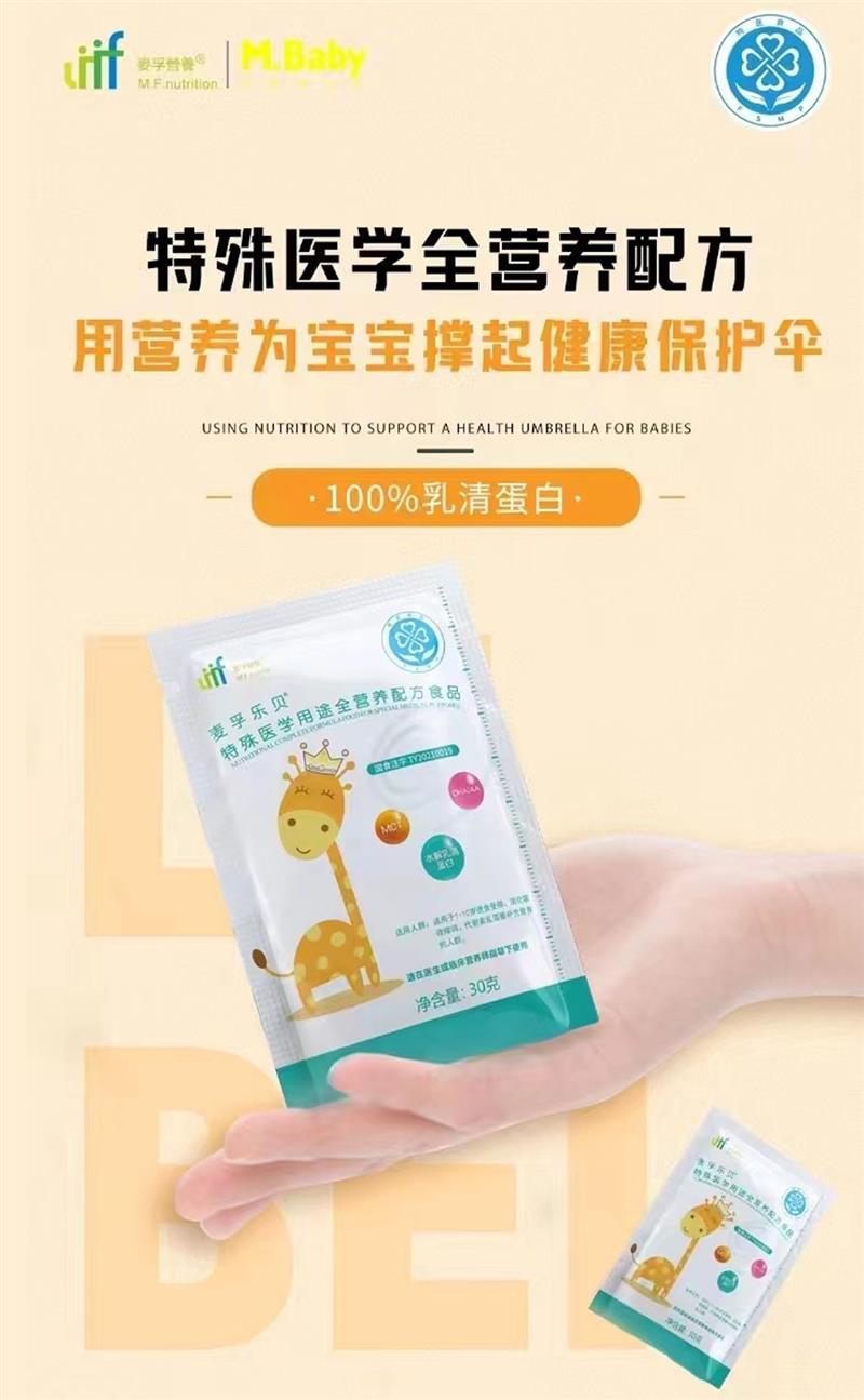 麦孚营养的麦孚乐贝®是一款适合1-10岁“胃肠脆弱”儿童的全营养配方。100%乳清蛋白来源,有临床研究表明乳清蛋白可以加快胃排空,减少反流风险,同时,维持肠粘膜结构完整,促进肠道吸收功能,增强肠道免疫功能。麦孚乐贝®采用肽类配方,而短肽正是蛋白质在人体吸收的主要形式,短肽从肠道入血液只需几到十几分钟,吸收利用程度几乎达到100%。同时,麦孚乐贝®还含有水溶性膳食纤维,可以增殖肠道益生菌,有益于儿童肠道健康。如果儿童有肠胃功能不适的情况,需尽早进行干预,麦孚乐贝®能够为“胃肠脆弱”的儿童提供易吸收的丰富营养,助力孩子健康成长。