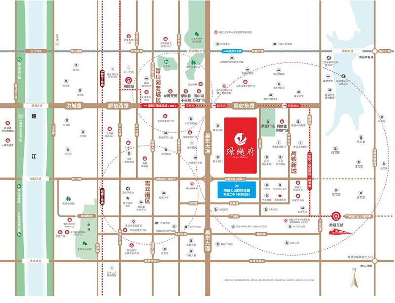 亚建南昌璟樾府项目位于南昌市青山湖区昌东大道以东、罗家西路以西、新溪桥路以北,总建筑面积77275.46㎡,项目近距离地铁2号线延线殷王站及罗家集站,双地铁口便携出行。周边配套教育医疗购物配套一应俱全。