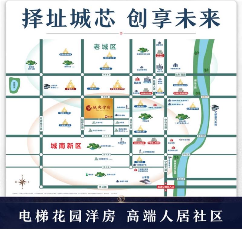 亚建城央学府,择址宁都城南新区核心位置,文安路与凌云大道交汇,由世界500强排名39位的中国铁路建设股份有限公司全资子公司中铁十五局承建。总建筑面积约181056.43㎡,由12栋洋房、4栋小高层以及2栋宽景高层组成。