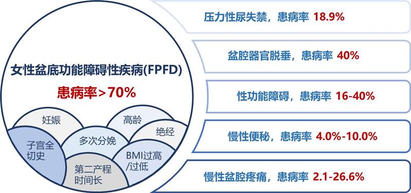 女性盆底功能障碍性疾病已成为威胁女性健康和生活质量的常见慢性病之一,主要包括尿失禁、盆腔器官脱垂、性功能障碍、排便障碍及慢性盆腔疼痛等[1]。