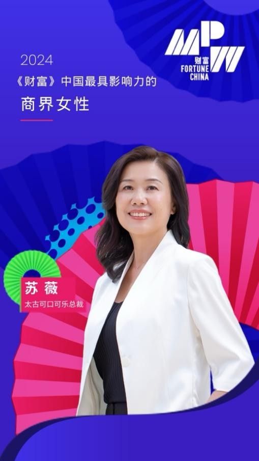 今日,太古可口可乐总裁苏薇女士再次荣登《财富》杂志“2024年中国最具影响力的商界女性”榜单(简称“MPW榜单”),苏薇女士还于较早前获选2024年“《福布斯》中国杰出商界女性100”奖项。MPW榜单是衡量中国商界女性领导力的重要风向标,苏薇女士以其卓越的领导力和独到的商业智慧,持续引领行业推动价值创造,再度登榜。