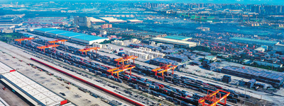 图为8月13日,成都国际铁路港等待装载的中欧班列货箱。前7月,成都开行中欧班列近1200列,同比增长58.6%。