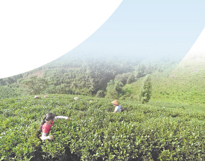 马意骏在广西梧州市六堡镇的八集茶山体验采茶。 |