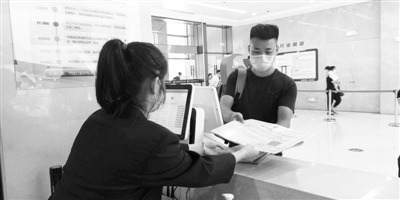 8月22日,一位企业负责人在天津市滨海新区政务服务办全流程自动化制证中心领取排污许可证。新华社记者 王井怀摄
