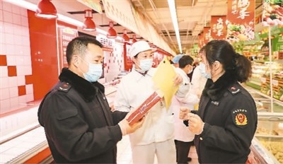 近期,河北省邯郸市广平县市场监管部门加强监督抽查和执法检查,净化节日市场消费环境。图为日前,广平县市场监管局广源分局执法人员在超市对肉类食品专柜进行执法检查。 |