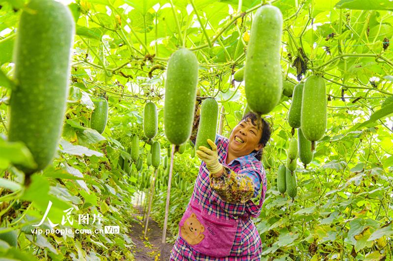 2021年4月19日,广西壮族自治区北海市合浦县廉州镇杨家山村村民在地里采摘丰收的毛节瓜上市。林启波摄(人民图片网)