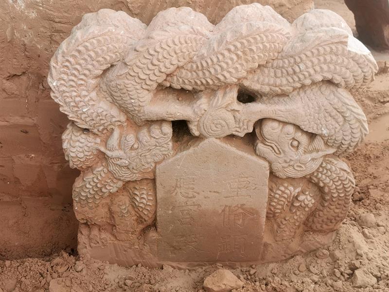 这是在陕西榆林清平堡遗址出土的石碑(2020年6月5日摄)。新华社发