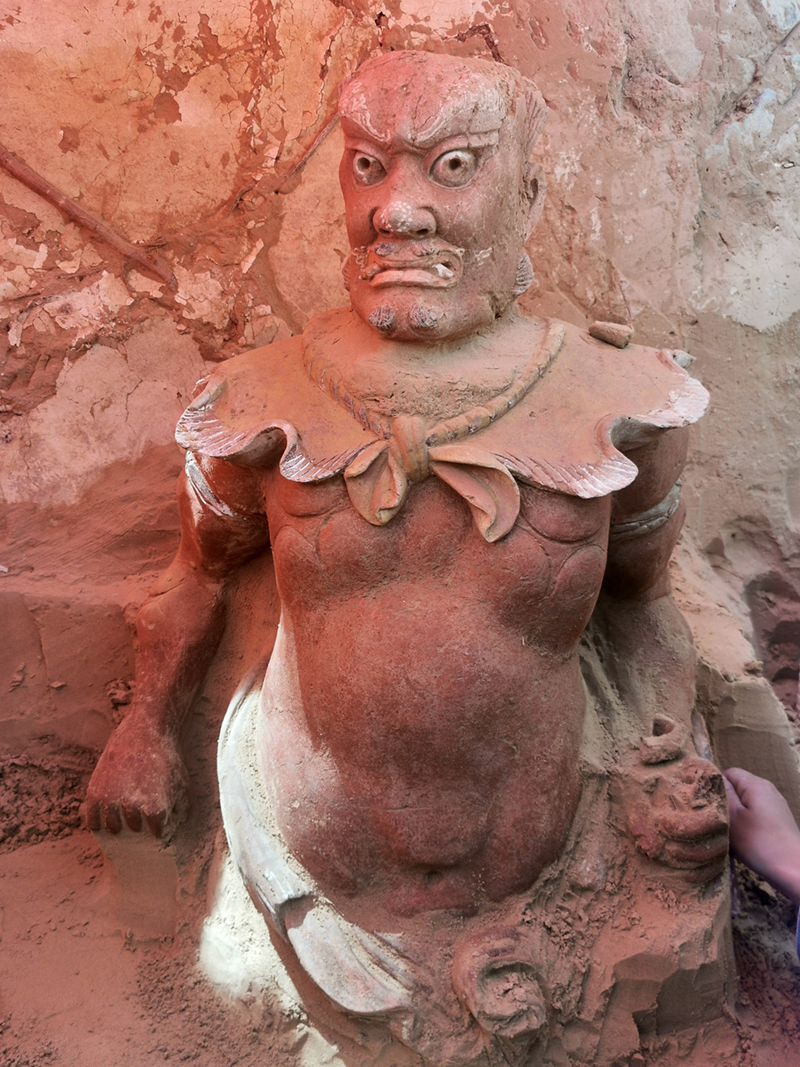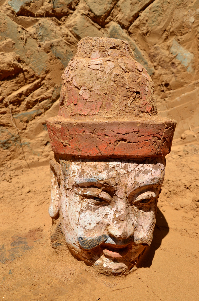 这是在陕西榆林清平堡遗址出土的泥塑造像(2020年5月24日摄)。新华社发