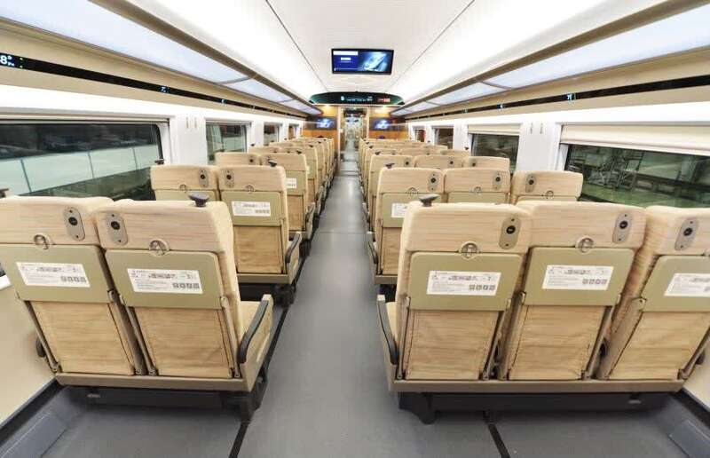 此外,列车还提升了整车座椅的舒适度。一等座椅增加可调节头靠、电动腿靠等。二等座在每一个座位都设置了USB充电接口,全车覆盖基于5G通信技术的无线网络。