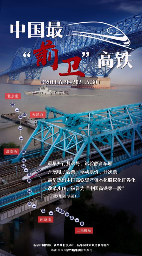 新华社北京6月30日电(记者樊曦、丁静)30日,京沪高铁迎来运营10周年。10年间,京沪高铁在中国高铁发展史上创造多项成绩,飞驰出一道亮丽轨迹。