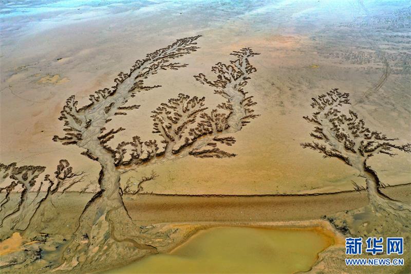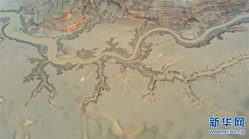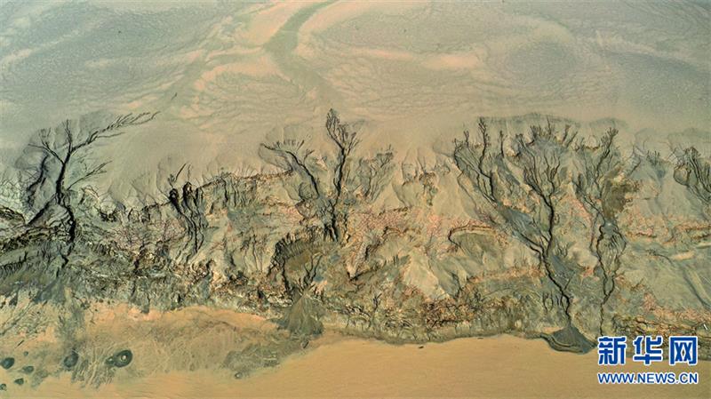 近日,随着黄河调水调沙的结束,河南省境内的黄河河道水位下降,河床大面积裸露。据介绍,水流的冲刷会在淤泥上留下痕迹,从空中俯瞰,这些痕迹宛如巨幅“浮雕版画”,蔚为壮观。