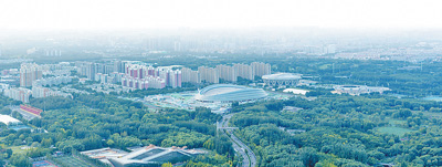 北京奥体中心南侧,楼宇林立,组合成中国传统的三进院落风格——这里是北京冬奥村,赛时将成为各国家和地区运动员在北京的“家”。