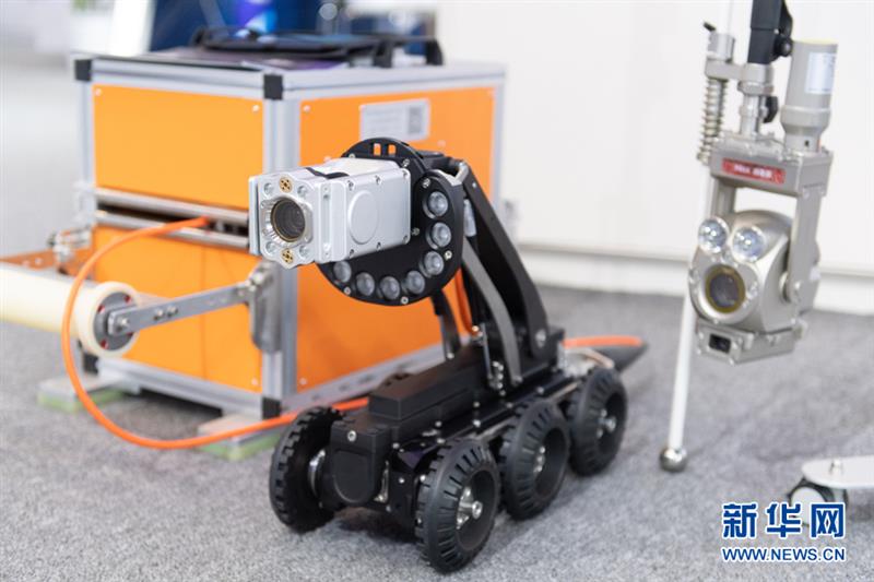 图为智博会上,重庆地大工研院参展的新型管网检测机器人。新华网 耿骏宇 摄