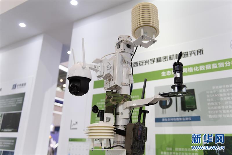 图为中国科学院西安光学精密机械研究所在智博会上展出的生态环境网络化数据监测分析系统。新华网 耿骏宇 摄