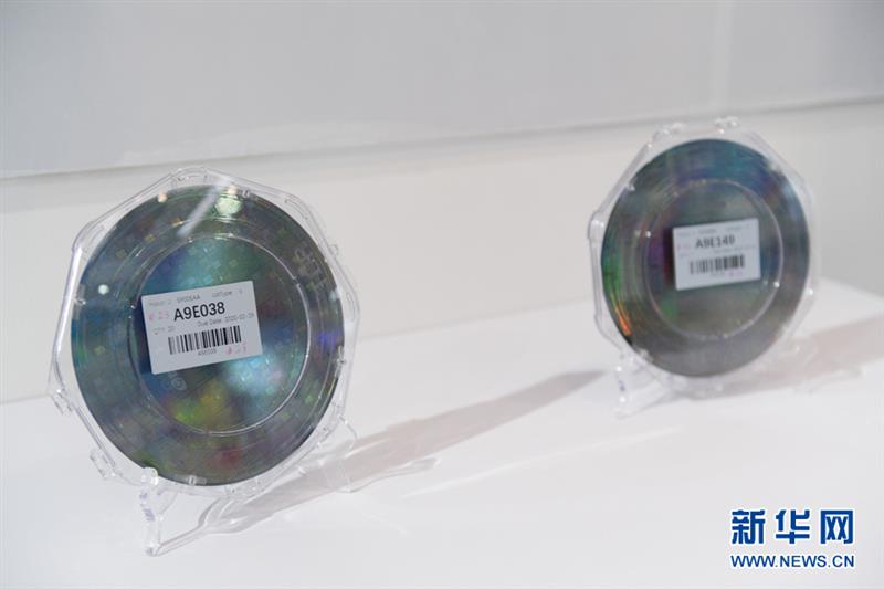 图为中国电科与重庆市共建的新型研发机构联合微电子中心现场展示的8寸晶圆。新华网 耿骏宇 摄