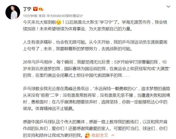 丁宁宣布退役 26年乒球生涯成就一颗勇敢的心