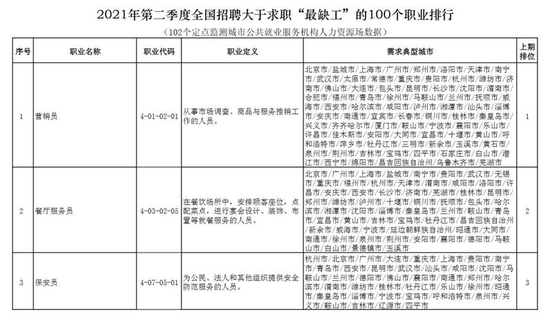 来看看!第二季度全国“最缺工”100个职业排行公布