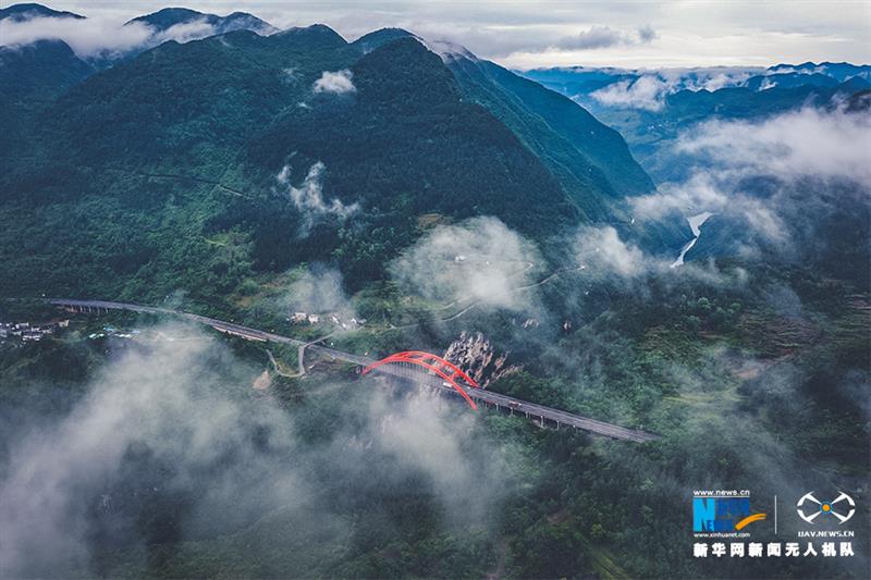 沿着高速看中国| 云雾中的渝湘高速细沙河特大桥
