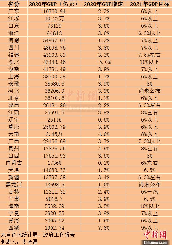 29省份2021年GDP增长目标出炉 两省定在10%以上