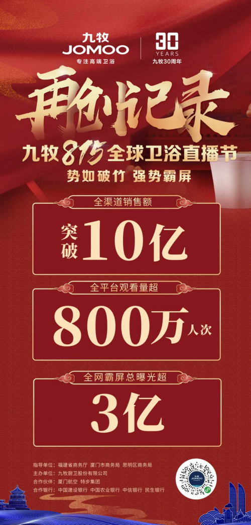 超10亿!九牧再破纪录!全闽乐购!福盖全球!