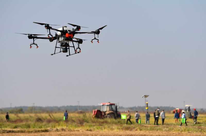 11月14日,在江西省南昌县蒋巷镇大田农社智慧农场,无人机植保设备在进行现场演示。