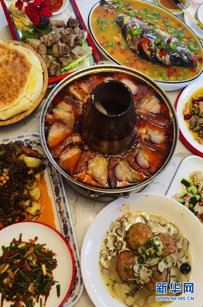 在马尔康市一家餐厅,各种菜肴摆放在餐桌上(8月12日摄)。新华社记者 江宏景 摄