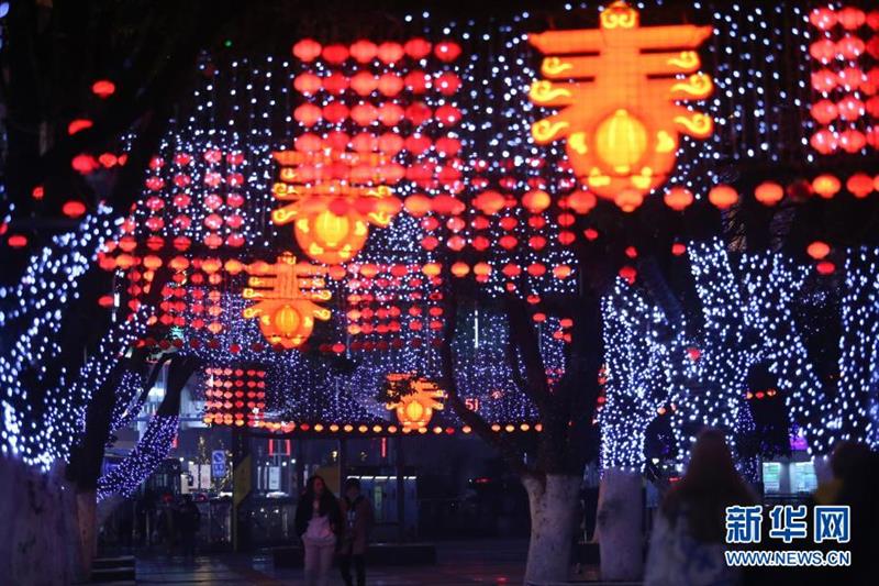 贵阳街头点亮新春彩灯(2月6日摄)。