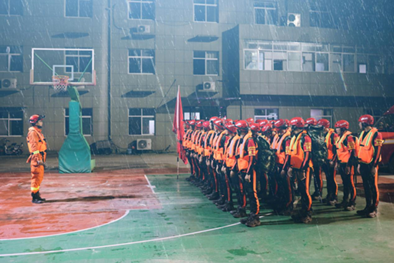 河北省消防救援总队第一时间调集石家庄、邢台、邯郸、衡水支队4支抗洪抢险专业队及训保支队共计389名指战员、96辆执勤车、31艘舟艇,防护、救生、破拆、排水、通信类装备器材4000余件(套),携行72小时自我保障物资,于7月21日4时23分全部集结完毕出发。