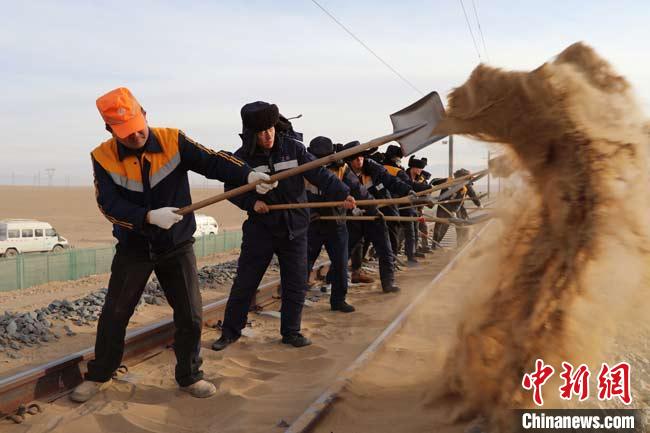敦煌铁路线上的“清沙人”:零下21℃徒步沙漠除万锹沙