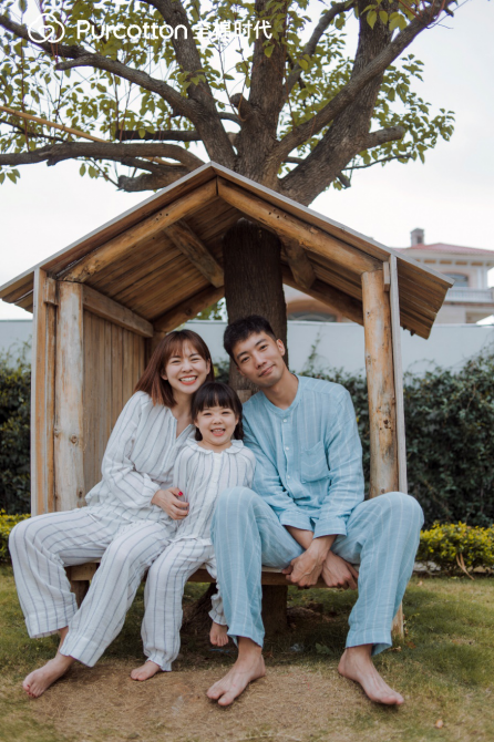做全棉生活的自在玩家,随心所欲,享受居家生活中的每一刻。清晨,卧室、阳光…一家三口穿着全棉时代纱布家居服,举着高高和今天说早上好,欢乐声荡漾在卧室里。