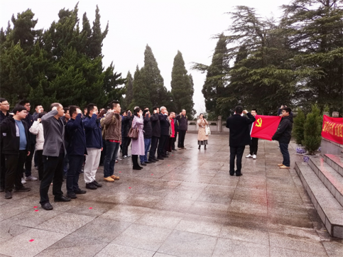 活动中,全体人员来到纪念碑前,献上花圈,整齐列队。肃穆默哀,追思革命先烈百折不挠的铮铮铁骨。伫立鞠躬,缅怀人民英雄奋勇抗争的忠贞不屈。党员们面对鲜红的党旗,举行“不忘初心,牢记使命”宣誓仪式,重温入党誓词,言语中饱含着对党和人民的无限忠诚与热爱。陵园工作人员一边带领大家瞻仰烈士墓陵,一边详细介绍英烈们的生平事迹。大家边走边听,脑海中渐渐显现出那段红色的烽火岁月,纷纷表示定当不忘初心,牢记使命,珍惜烈士们用生命换来的和平。