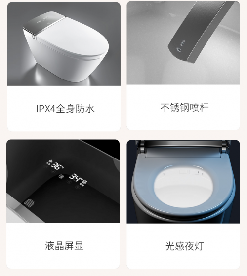 而市面常见的智能马桶采用的是拍盖排水阀,遭遇马桶堵塞,排水会无法正常关闭,导致锅面污物直接污染水箱,并且还会遇上用水量稳定性较差、水量固定不可调等糟心问题,可作为另外之选。