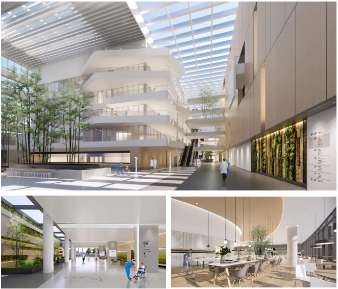 充分打造个性化、互动的就医空间,改善患者就医体验并提高治愈效率,实现以最佳的临床治疗结果和医疗实践为依托的高品质医疗体。设计期望创造一个与自然环境融合、为患者提供一个安全的治疗环境的建筑体,同时为医生提供一个舒适的工作环境,为周边提供一个绿色的休闲环境。通过自然光、色彩、艺术品和景观的结合,提供安静和私密性强的空间,将治愈、安全和宜人的环境及先进科技的理念整合在设计中。