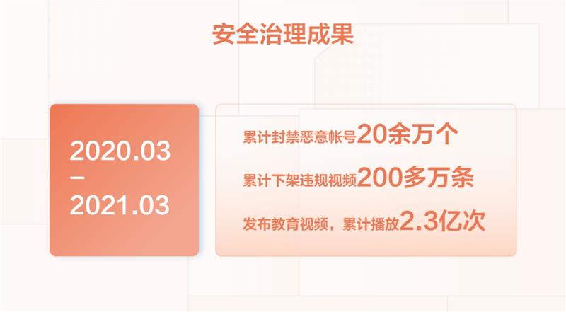 在帐号治理上,2021年封禁对青少年不友好账号9907个,封禁设备10109个。对宠粉送礼诈骗、冒充警察诈骗等高风险行为,线上拦截总量超过481万,封禁诈骗用户超13.8万,并配合警方完成线下打击案件10起。