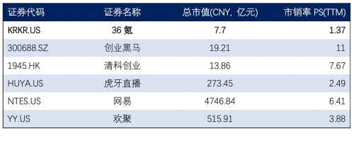 表1:36氪与可比企业估值水平(截至2021年4月13日) 资料来源:wind