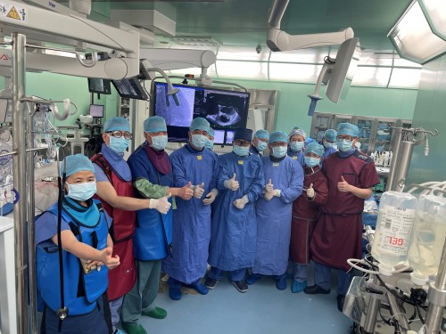 2021年4月21日,复旦大学附属中山医院葛均波院士携周达新教授、潘文志教授、张晓春教授、陈莎莎医师,在心超科舒先红教授、潘翠珍教授、李伟教授,麻醉科缪长虹教授、郭克芳教授,心外科魏来教授等多学科团队的密切配合下,成功完成汇禾医疗自主研发的K-Clip™经血管三尖瓣修复系统临床试验的首例植入。手术的成功同时也标志着K-Clip™顺利打响临床“第一枪”,国产三尖瓣介入器械研究迈入新征程。