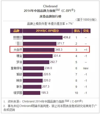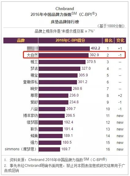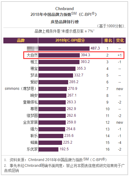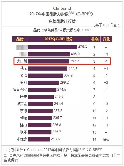 能够连续8年蝉联中国品牌力指数(C-BPI)床垫品牌榜前三,是消费者对大自然床垫的肯定和鼓励,更是大自然前进的动力与责任。