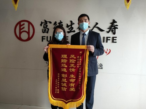 经过此次理赔,周先生一家切身感受到保险真正的意义与功用,对富德生命人寿快速、诚信的理赔服务表示非常满意。收到理赔款后,周先生还委托妻子余女士专程来到公司,向工作人员送上一面印有“风险无情,生命有爱,理赔迅速,彰显诚信”的锦旗,以表达对富德生命人寿保险产品与理赔服务的肯定。