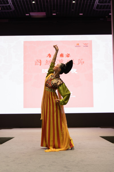 汉服之夜活动现场图 24日当晚的汉服之夜,以唐代服饰为主题,小剧场再现大唐舞乐盛宴,将本次活动推向高潮。精致养眼的妆容、服饰,优美的舞姿,一眼望去,真是梦回大唐。两位舞者身穿高度还原唐代华美装束,随着古乐偏偏起舞,优美身段犹如眼帘,让人过目不忘,特别是来自亿燊文化的李梦玥扮演其中一位舞乐仕女-梦鹤子,舞姿铿锵有力,一曲胡旋舞让人惊叹。 汉服之夜中,由乔织工作室打造的一场初唐装束复原秀 -- 《高昌故事》让在场观众一饱眼福,剧情以唐代的“弈棋仕女图”为线索,将新疆阿斯塔那出土文物串联成一则西域贵族的故事。通过还原服饰、生活器具、饮食娱乐等场景,配合服饰知识解读,观众在欣赏之余立体感受初唐时期人们的服饰风格,以及传统汉服文化的魅力。