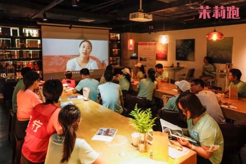 跑友们在活动现场的公益分享会上聆听了五年来“妆典生命”不平凡的公益历程 |