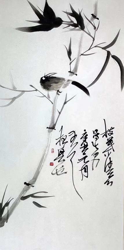 繁昌的大草书作品遒劲俊逸,纵横取势,变化多姿,才思奇爽,超轶不羁,出新意于法度之中,收奇效于意想之外,仿佛是抒情诗,是交响乐,具有相当的表现性和感染力。我见过他写字时的状态,那真是机神乍到便兴致勃发,解衣盘礴,笔走龙蛇,因势变化,矫变灵异,心手两忘,表现出一种高度的浪漫主义色彩。他随心任情地自由挥洒,用笔或急或徐,急迅时若骤雨旋风势不可遏,徐缓时如弱柳扶风轻柔曼妙,整个创作过程几近癫狂,通篇作品燥润相杂、墨气淋漓充溢着擒纵自如的才情与智慧,达到一种“从心所欲不逾矩”的境地。而今的繁昌更将纵逸狂放的草法延伸到了花鸟画的创作中,见他在画中题诗——“狂来信手去,不问丹青谁”,但观其画作,已然直抵奥境。
