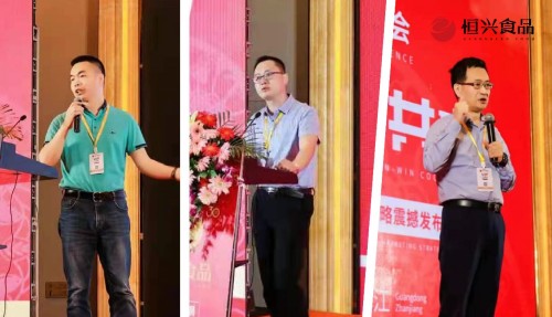 恒兴集团水产食品事业部国内营销中心总监杨昂若(左)&恒兴集团水产食品事业部总经理陈泉(中)&恒兴集团水产食品事业部研发中心副总监 冯治国(右)