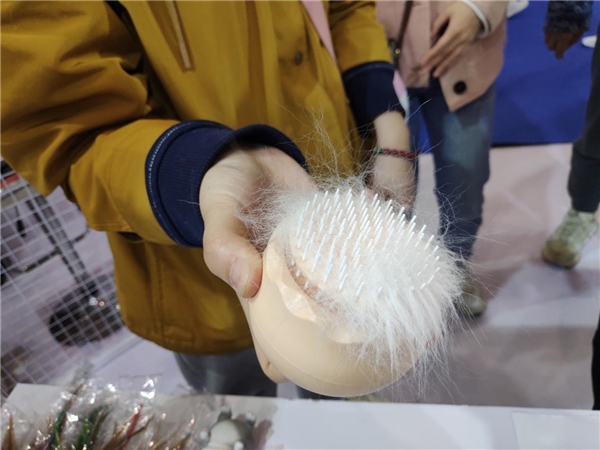 现场除了猫厕所和猫碗之外,精致小巧的猫梳也很受欢迎,大家纷纷给自家猫咪体验,都反馈体验感觉不错。