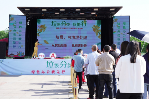 2021年4月29日,成都新都区举行“垃圾分类我能行 绿色办公我先行”趣味知识竞答活动。本次活动由成都市新都区生活垃圾分类工作推进领导小组办公室主办,新都区综合行政执法局,新都区城市精细管理运维中心,新都现代交通产业功能区管理委员会协办,南山控股新都科技园承办。活动通过路演、宣讲以及现场游戏互动,发动企业及职工积极参与垃圾分类,共同推进新都垃圾分类工作。