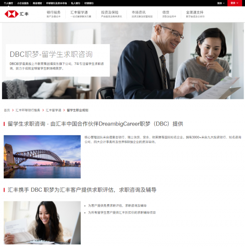 汇丰与DBC职梦同样关注留学生职业发展规划,为培养更多具有国际竞争力的优秀金融人才,DBC职梦作为留学生求职咨询领军品牌,与汇丰银行(中国)达成合作,免费为汇丰客户提供求职评估,另汇丰客户可享DBC职梦专属折扣价求职技能课程,更进一步提供留学生综合求职实力。
