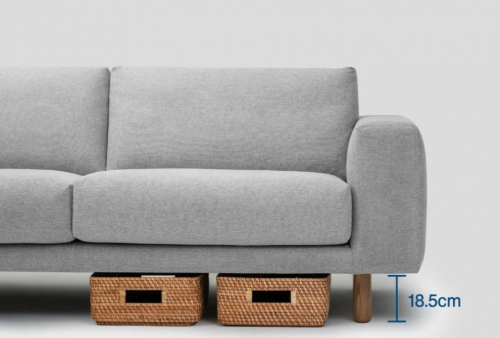 此外,MUJI無印良品将沙发距离地面的高度设计为大约18.5cm,不仅能够放入高度不超过16cm的收纳商品,还能增添收纳空间,更易于日常的打扫。