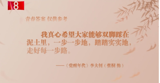 青春是什么?一百多年前,那一代青年用呐喊和鲜血谱写下了壮美的青春;一百多年后,我们在最好的青春年华里,活出了五彩斑斓的人生。1916年,尚在留学的李大钊目睹春日载阳,东风解冻,写下《青春》一文寄语青春之中华,“宇宙无尽,即青春无尽,即自我无尽。此之精神,即生死肉骨、回天再造之精神也。此之气魄,即慷慨悲壮、拔山盖世之气魄也。”曾在《觉醒年代》中扮演李大钊的青年演员张桐带我们重温了中国青年的热血与热望,“青春之国家,青春之民族,青春之人类,青春之地球,青春之宇宙,资以乐其无涯之生。”百年征程,前人披荆斩棘,方有今日吾辈的向阳生长。