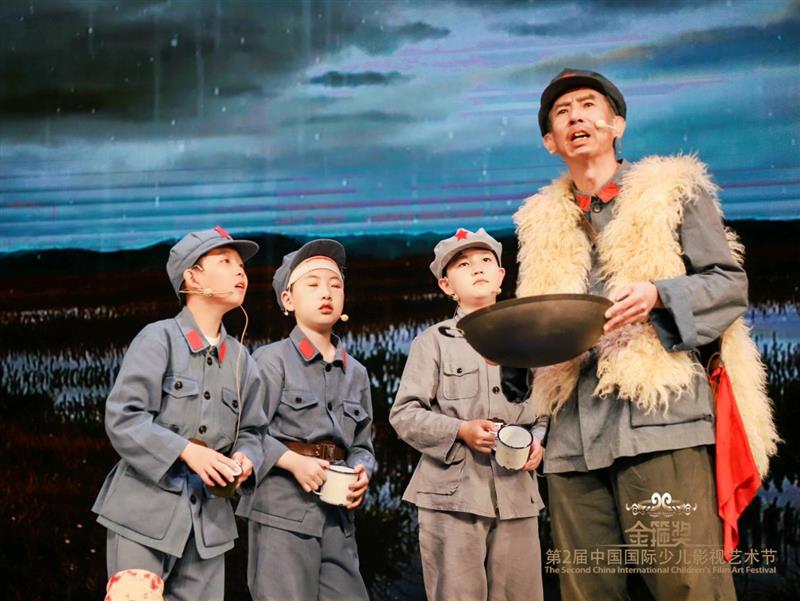 老艺术家石小元老师牵手三个“小红军”共同演绎了经典课本剧《金色鱼钩》的故事。孩子们在“老班长”的精心指导下,全身心投入到角色创作中,变身成为了剧中小红军战士。为我们展现了红军长征时期“老班长”不负党的嘱托,照顾三个小战士走出草地、舍身忘我、壮烈牺牲的崇高精神;现场表演感人至深,催人泪下!