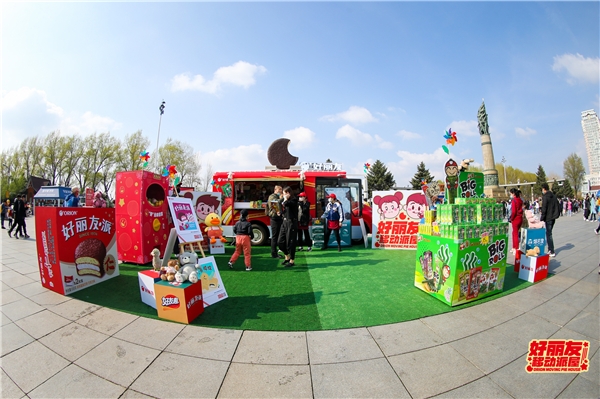 好丽友也选择在此时惊喜发车!五一期间,在哈尔滨和南京两地同步搭建线下快闪店“好丽友移动派屋”。小长假首日,南京玄武湖单日接待游客15万人次;哈尔滨的中央大街沿线客流量更突破60万。红彤彤的移动派屋顶着大大的好丽友派,无论在清爽空旷的松花江畔,还是绿荫环绕的玄武湖景区都显得十分醒目。满满一车的零食更是成为疲累旅途的能量补给站,吸引一众游客驻足围观,打卡消费。