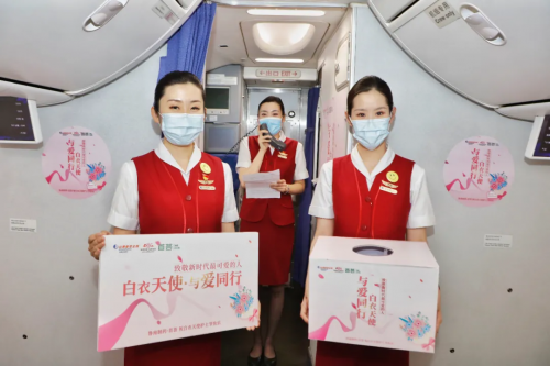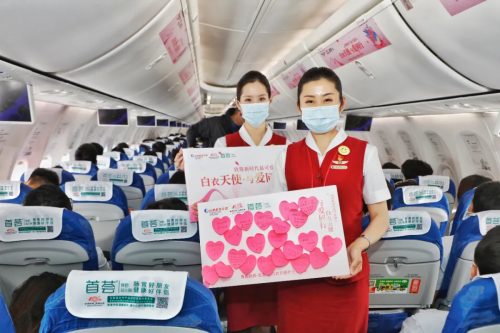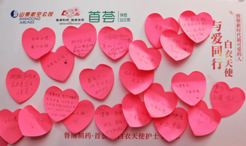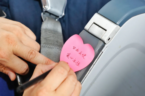 在护佑生命的主旋律中,无数医护人员的逆行唱响了战“疫”的精神赞歌,我们每个人也对医护工作者有了新的认识和感悟,有很多话想要对他们表达。乘务员们向旅客发放心形便利贴,邀请大家在卡通飞机的祝福板上留下对“白衣天使”的祝福,旅客们饱含热情,书写着最真挚的祝福。